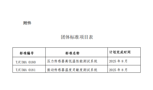 《壓力傳感器高低溫性能測試系統》等2項團體標準正式立項
