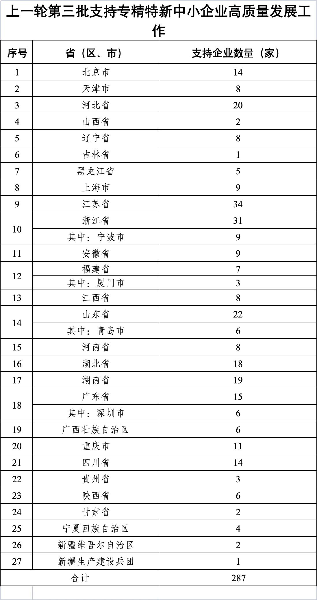 為深入貫徹習近平總書記關于促進中小企業專精特新發展的重要指示精神,按照《財政部 工業和信息化部關于進一步支持專精特新中小企業高質量發展的通知》(財建〔2024〕148號)和《關于開展第三批第二年財政支持專精特新“小巨人”企業高質量發展績效評價工作的函》(工企業函〔2025〕27號),現將新一輪第二批和上一輪第三批支持專精特新中小企業高質量發展工作2025年擬支持各省企業數量向社會公示,公示時間為5月30日-6月6日。