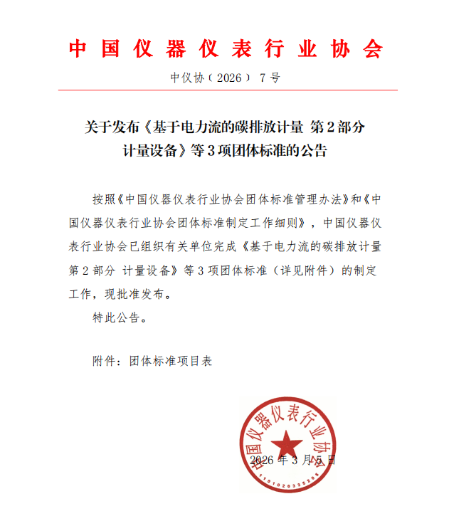 關于發布《基于電力流的碳排放計量 第2部分 計量設備》等3項團體標準的公告