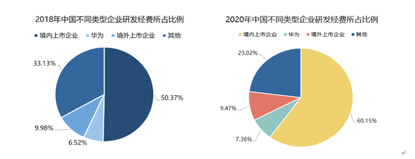 中國(guó)境內(nèi)上市企業(yè)占據(jù)企業(yè)研發(fā)活動(dòng)的優(yōu)勢(shì)地位。報(bào)告顯示,2020年,中國(guó)境內(nèi)上市企業(yè)中4580家企業(yè)有研發(fā)經(jīng)費(fèi)支出,而境外上市企業(yè)只有159家,從2018年到2020年,中國(guó)境內(nèi)上市企業(yè)研發(fā)經(jīng)費(fèi)投入由7672.95億元增長(zhǎng)至11231.48億元,占企業(yè)研發(fā)經(jīng)費(fèi)投入的比重也由50.37%上升至60.15%,境外上市企業(yè)和其他企業(yè)占比由43.11%下降至32.49%。
