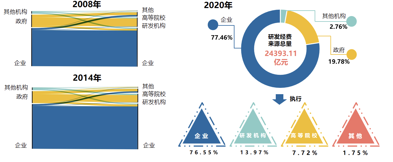 圖11 中國(guó)研發(fā)經(jīng)費(fèi)各部門來源-執(zhí)行結(jié)構(gòu)(2008-2020年)