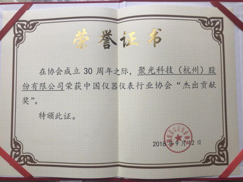 聚光科技(杭州)股份有限公司榮獲中國儀器儀表行業協會杰出貢獻獎