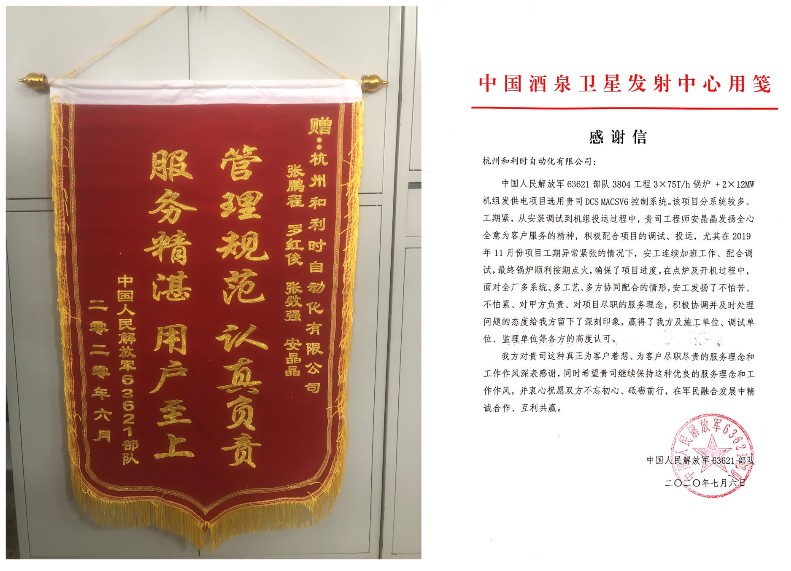 近日,杭州和利時自動化有限公司(下簡稱“杭和公司”)順利完成酒泉衛(wèi)星發(fā)射中心智慧電廠項(xiàng)目,獲得業(yè)主方認(rèn)可和稱贊,為東風(fēng)航天城辛苦奮戰(zhàn)在一線的同胞們貢獻(xiàn)一份力。