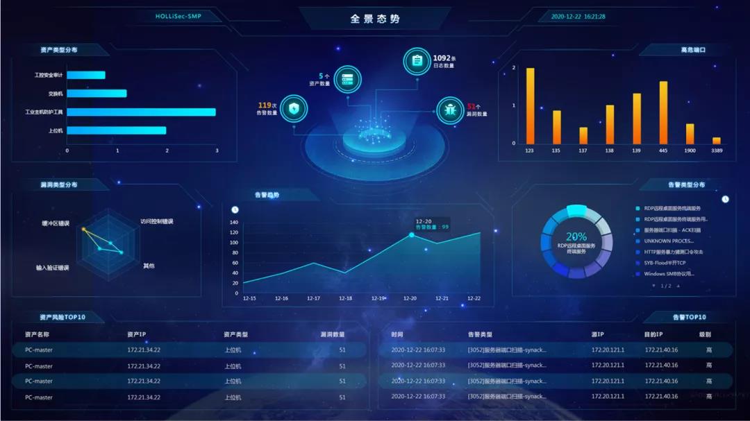 和利時(shí)工業(yè)安全態(tài)勢(shì)感知系統(tǒng),可實(shí)現(xiàn)工業(yè)安全設(shè)備和工業(yè)資產(chǎn)集中管控,基于審計(jì)、日志、態(tài)勢(shì)、告警和事件等多維度輸入,提供攻擊溯源能力,支持多種異構(gòu)數(shù)據(jù)和協(xié)議的全方位數(shù)據(jù)采集和分析。同時(shí),該系統(tǒng)以全景態(tài)勢(shì)可視化呈現(xiàn),多維度展示安全態(tài)勢(shì)感知,支持安全、業(yè)務(wù)、告警、時(shí)間的多維度關(guān)聯(lián)安全分析。