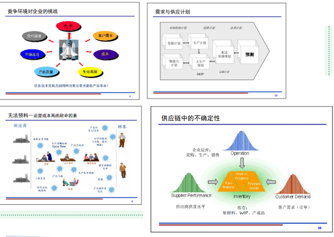 史老師從企業(yè)在經(jīng)營上經(jīng)常遇到的問題入手,分析了運營成本高的致命因素,指出供應鏈管理的核心問題就是在提供超常的客戶價值上幫助企業(yè)創(chuàng)造競爭優(yōu)勢。在內(nèi)部供應鏈部分,史老師犀利的指出,傳統(tǒng)的內(nèi)部供應鏈沒有用系統(tǒng)和整體的視角產(chǎn)生總體相關價值。外部供應鏈部分,他指出,從供應商到制造商、到配送、到最終用戶,各個環(huán)節(jié)信息的畸變,導致需求的難以預測,不能讓生產(chǎn)者對庫存、產(chǎn)能等做出準確的判斷。因此需要一套技術環(huán)境,來集成“需方”和“供方”的流程,從而減少庫存水平、縮短供應鏈周期、降低供應鏈成本。史老師在課堂上還分享了戰(zhàn)略尋源管理、供應商管理總流程,還向大家展示了通過功能和戰(zhàn)略兩個層面的聯(lián)盟達到改進與客戶伙伴關系的方法。對于供應鏈中的一些不確定性,史老師也從評估風險發(fā)生可能性、識別風險來源和評估風險影響等幾個角度講解,并給出了風險管理的策略和應對供應鏈風險的反應機制。最后史老師用典型案例詮釋了什么是最佳的供應鏈管理。