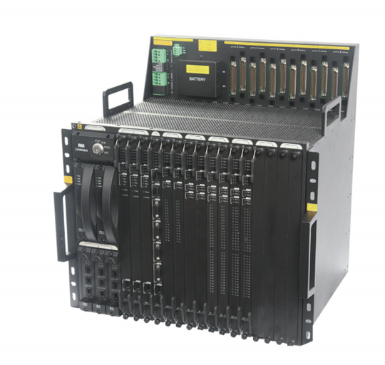 總線接口模塊對外包含3個光纖接口,供應商或系統(tǒng)集成商可以根據(jù)實際項目的需要選擇采用星型拓撲結(jié)構擴展遠程機架還是采用總線拓撲。由于項目的差異性,遠程機架與主機架的相對分布各不相同,靈活的拓撲可以幫助用戶盡量節(jié)省布線費用。