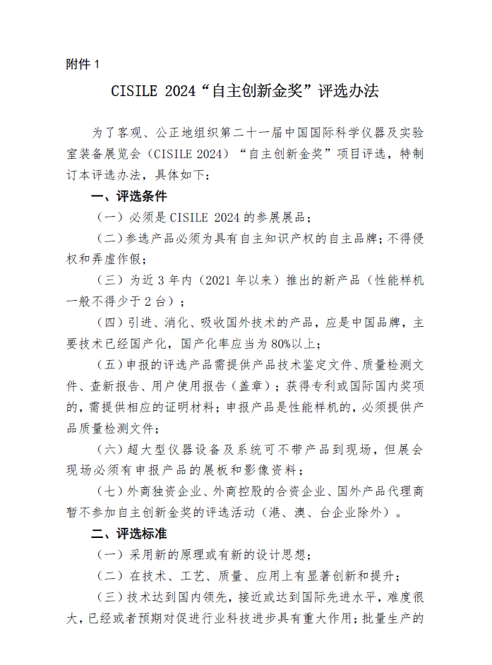 1.CISILE 2024“自主創(chuàng)新金獎”通知原文及評選辦法