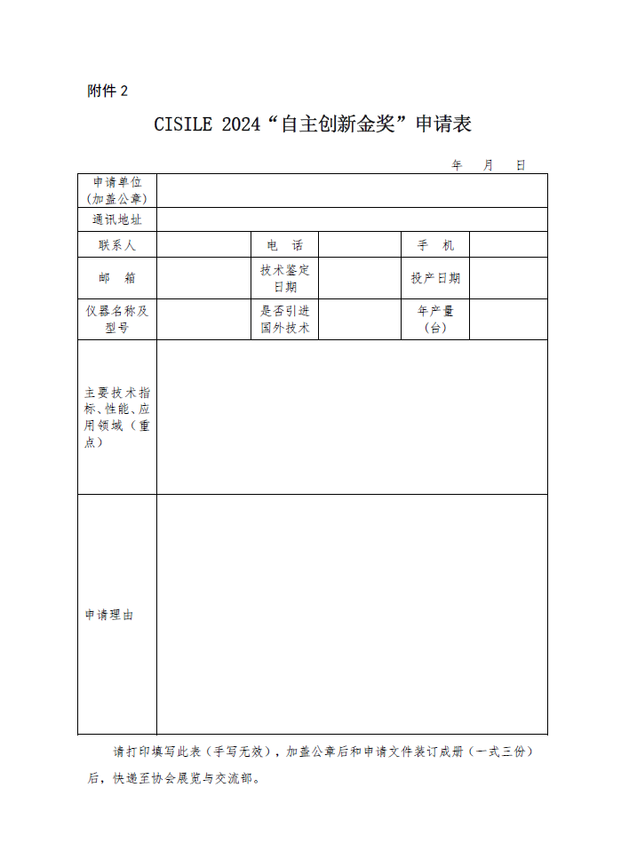 2.CISILE 2024“自主創(chuàng)新金獎”申請表
