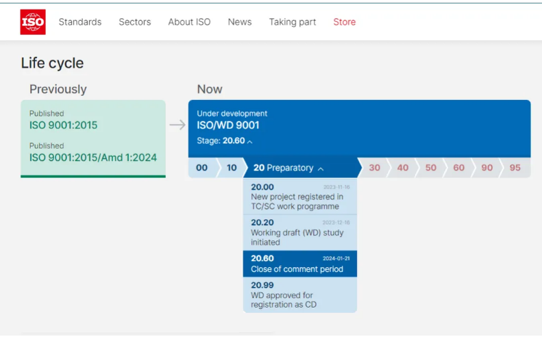 會議確定ISO 9001標(biāo)準(zhǔn)的修訂從2024年1月開始,將包括WD(Working Draft)、CD( Committee Draft)、DIS(Draft for International Standard)和FDIS(Final Draft for International Standard)四個階段。