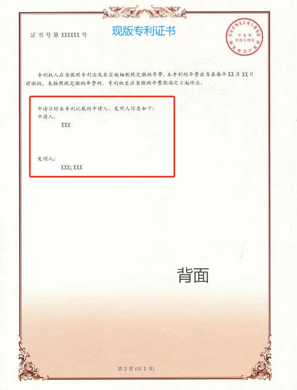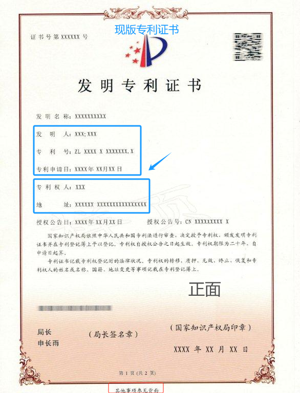 (新版發(fā)明專利證書(shū)和現(xiàn)版發(fā)明專利證書(shū))