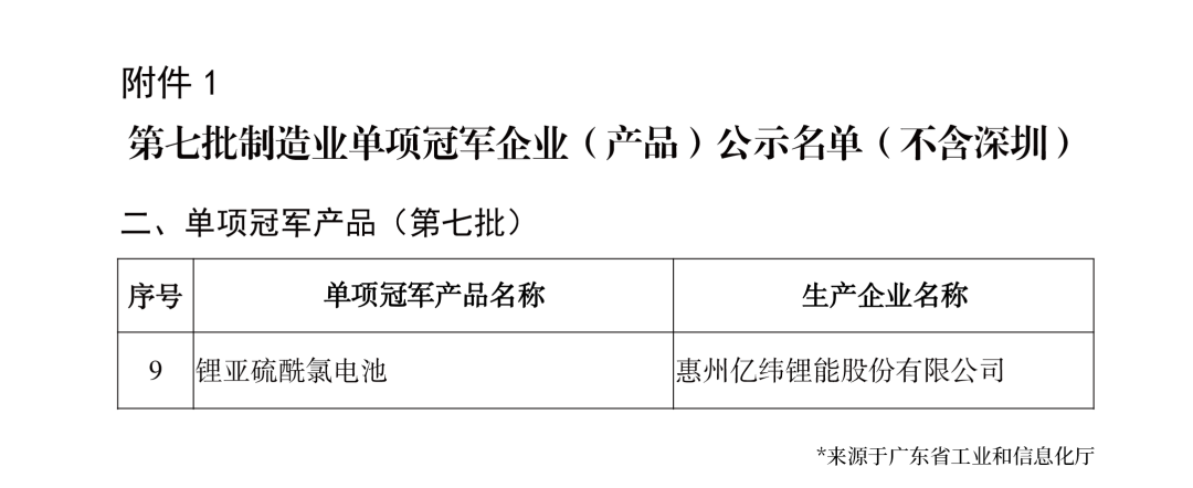此次成功入選“國家級(jí)制造業(yè)單項(xiàng)冠軍產(chǎn)品”,是對(duì)億緯鋰能鋰亞電池深厚的行業(yè)積淀、先進(jìn)的技術(shù)水平、領(lǐng)先的市場(chǎng)地位、精益的質(zhì)量水平的高度認(rèn)可。