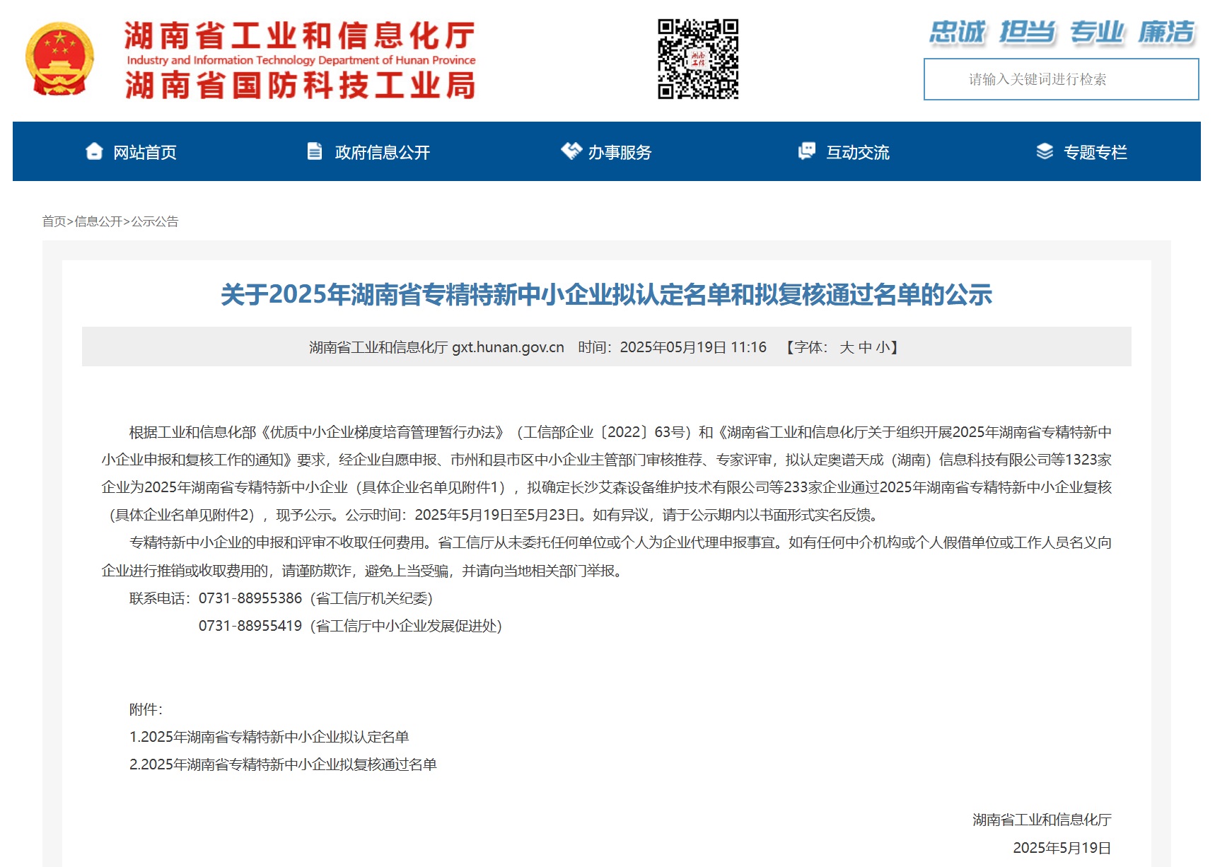 日前,湖南省工業(yè)和信息化廳公示《關(guān)于2025年湖南省專精特新中小企業(yè)擬認(rèn)定名單和擬復(fù)核通過(guò)名單》奧譜天成·集團(tuán)湖南子公司長(zhǎng)期深耕光譜儀器制造與應(yīng)用領(lǐng)域,獲評(píng)湖南省專精特新中小企業(yè)。