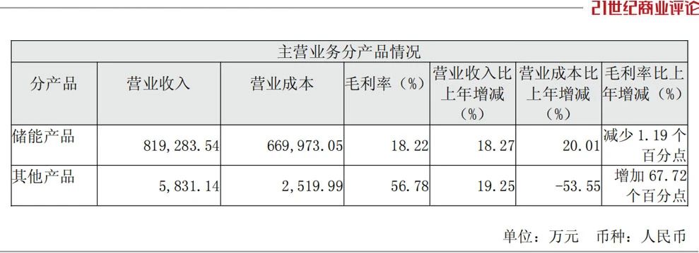 財報顯示,其2024年營收為82.7億元,儲能產品收入占99%,技術服務等其他收入僅貢獻5831萬元。