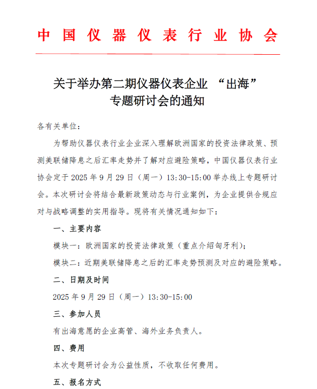 關于舉辦第二期儀器儀表企業“出?!睂n}研討會的通知