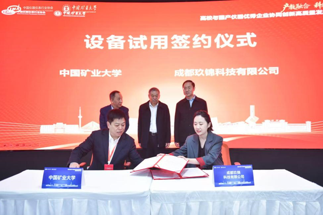 此次活動促成了寧波永新光學股份有限公司,先臨三維科技股份有限公司、成都玖錦科技有限公司、中國科學院合肥物資科學研究院4家企業與礦大簽訂設備試用協議。工信部裝備工業一司原一級巡視員苗長興、協會秘書長李躍光、礦大副書記李江濤共同見簽,礦大實驗室與設備管理處處長吳祝武代表礦大與企業簽約,通過此次設備試用協議的簽訂及合作平臺的搭建,開啟了校企儀器應用與技術合作的嶄新篇章,為國產儀器的市場化應用注入了新的動力。