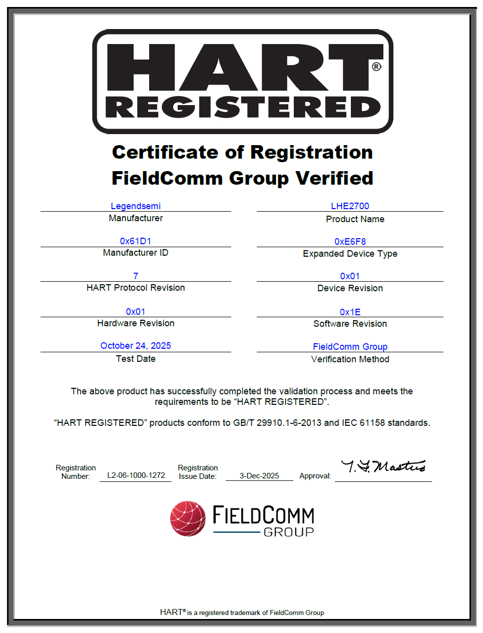 而 FieldComm Group 作為 HART 協(xié)議的權(quán)威管理機(jī)構(gòu),其認(rèn)證以嚴(yán)苛的技術(shù)標(biāo)準(zhǔn)著稱,涵蓋物理層、數(shù)據(jù)鏈路層、應(yīng)用層全鏈路測(cè)試,以及 EDD/FDI 設(shè)備包兼容性驗(yàn)證。通過(guò)該認(rèn)證,意味著 LHE2700 可無(wú)縫對(duì)接主流 DCS、PLC 控制系統(tǒng)及 HART 手操器,徹底消除不同廠商設(shè)備間的通信壁壘,為工業(yè)客戶提供高可靠的 “即插即用” 解決方案。