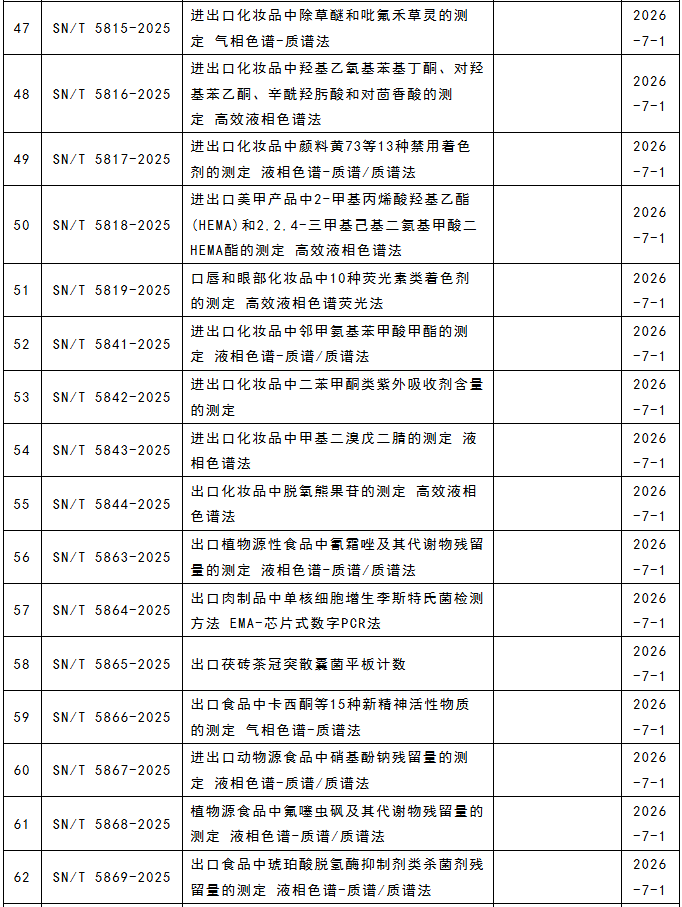 這117項行業標準涵蓋食品、化妝品、藥材等領域,涉及液相色譜串聯質譜法、液相色譜-質譜/質譜法、高效液相色譜法、電感耦合等離子體質譜法、近紅外光譜法、實時熒光PCR方法等檢測方法。