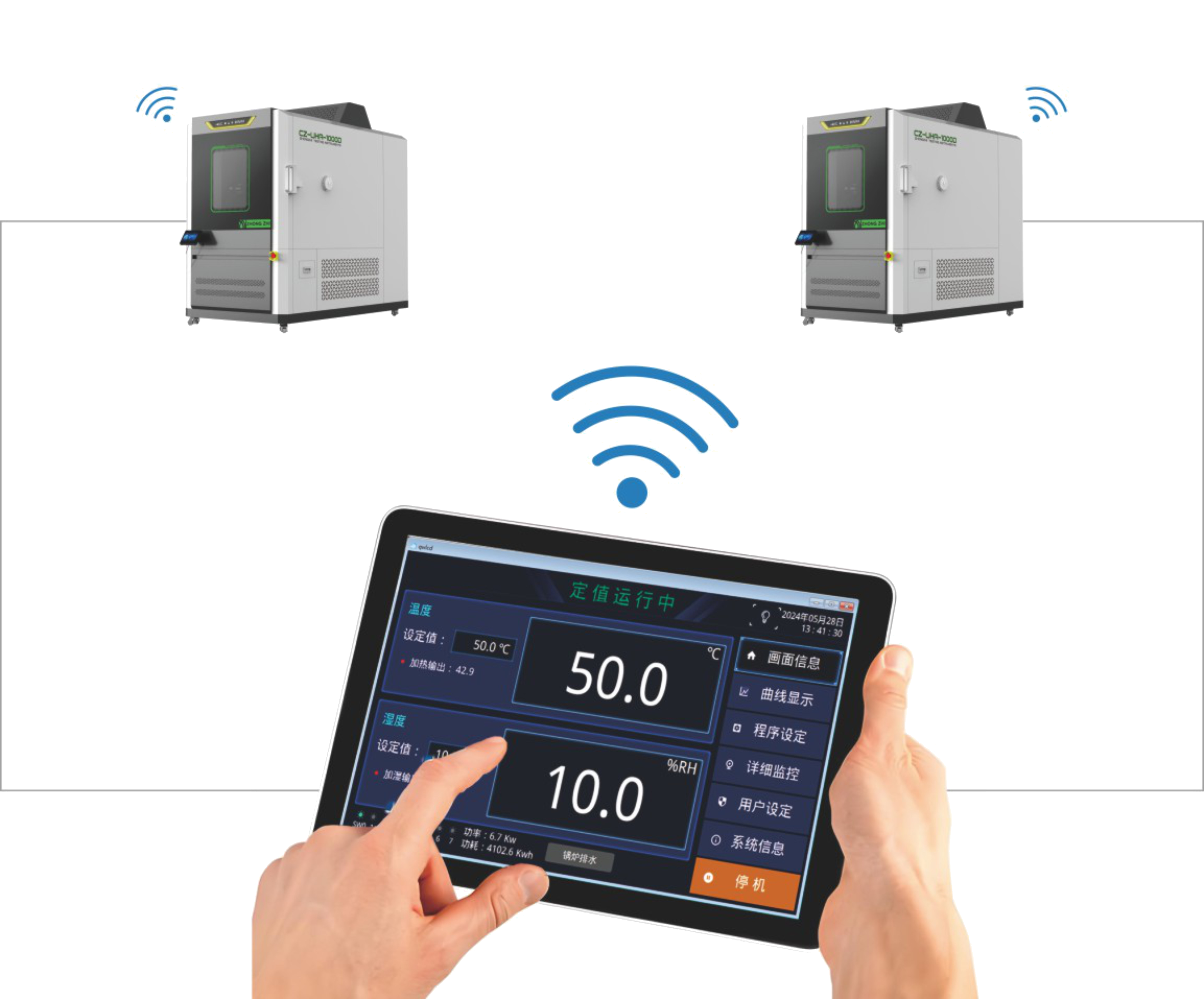 眾志檢測儀器自主研發的新一代控制系統采用4.0工業互聯技術,實現設備的可視化、可控化以及無人值守功能。用戶可通過手機、電腦或平板等終端實時操作設備,大幅提升使用便捷性。設備采用一體化功能設計和專業減震、降噪結構,運行更加平穩,噪音控制在65分貝以下,箱內溫度場均勻性更高,偏差更小。