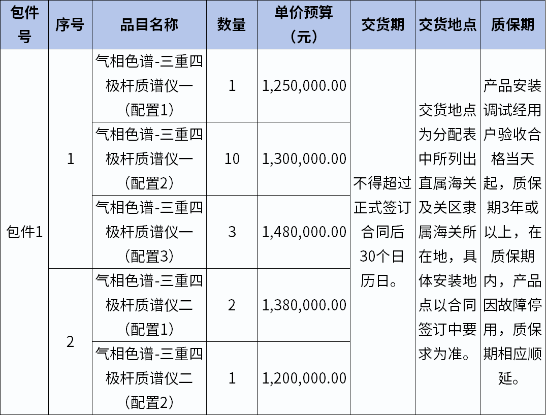 項目名稱: 海關(guān)總署2025年氣相色譜-三重四極桿質(zhì)譜儀(第一批)采購項目(重新招標)