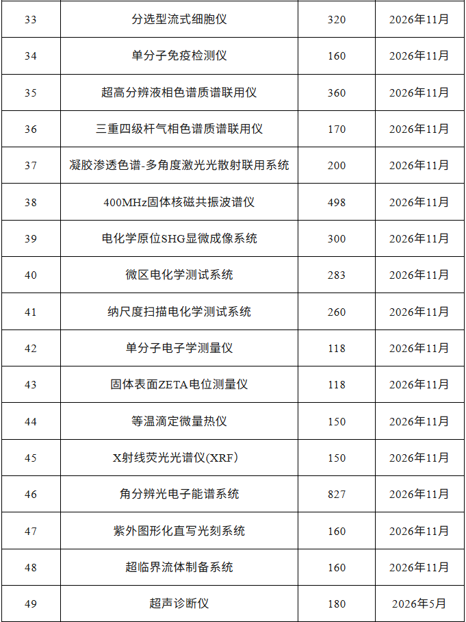 近期,湖南大學發布多項儀器采購項目,擬采購二維X-射線小角散射儀、X 波段脈沖式電子順磁共振波譜儀、全光譜熒光壽命共聚焦顯微鏡、核酸合成儀、場發射透射電子顯微鏡、電感耦合等離子體質譜儀、超高分辨液相色譜質譜聯用儀等儀器設備,預算總金額13641.8萬元,預計采購時間2026年1月~11月。