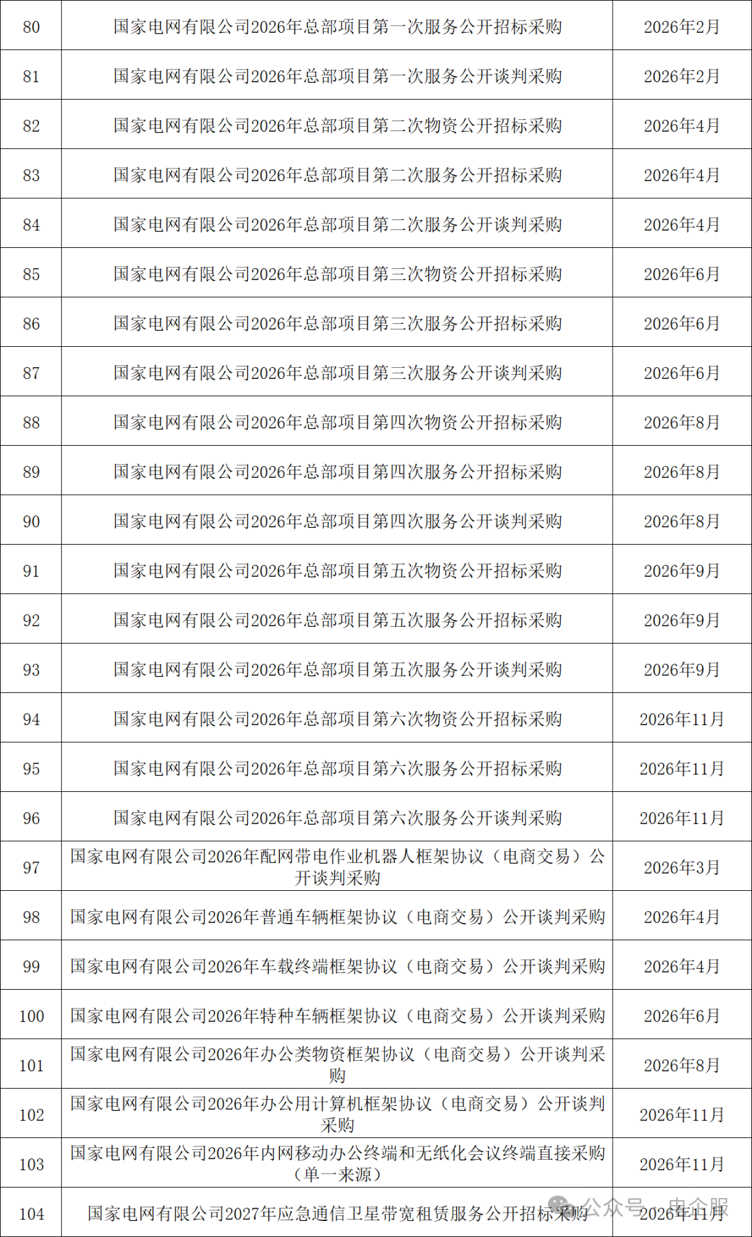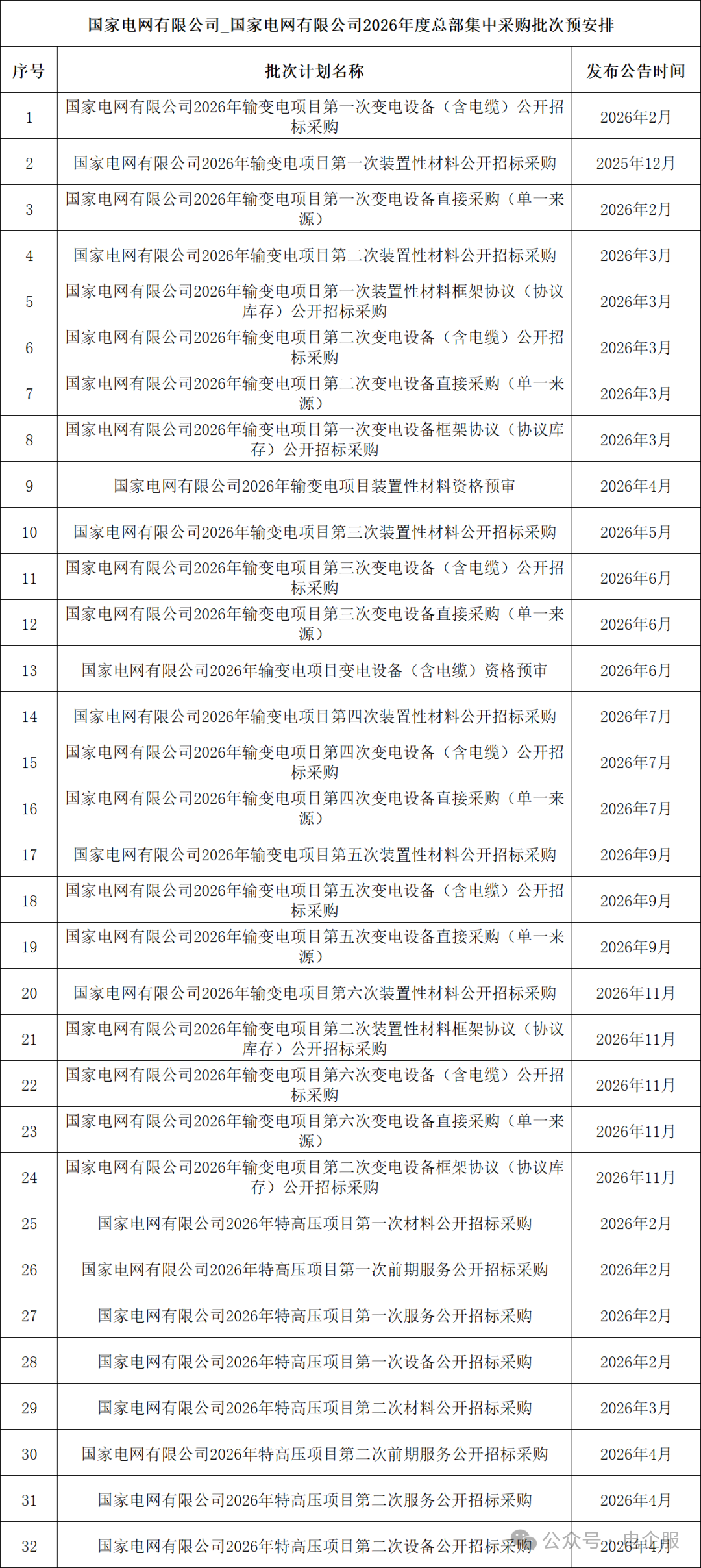 國(guó)家電網(wǎng)有限公司2026年度總部集中采購(gòu)批次預(yù)安排