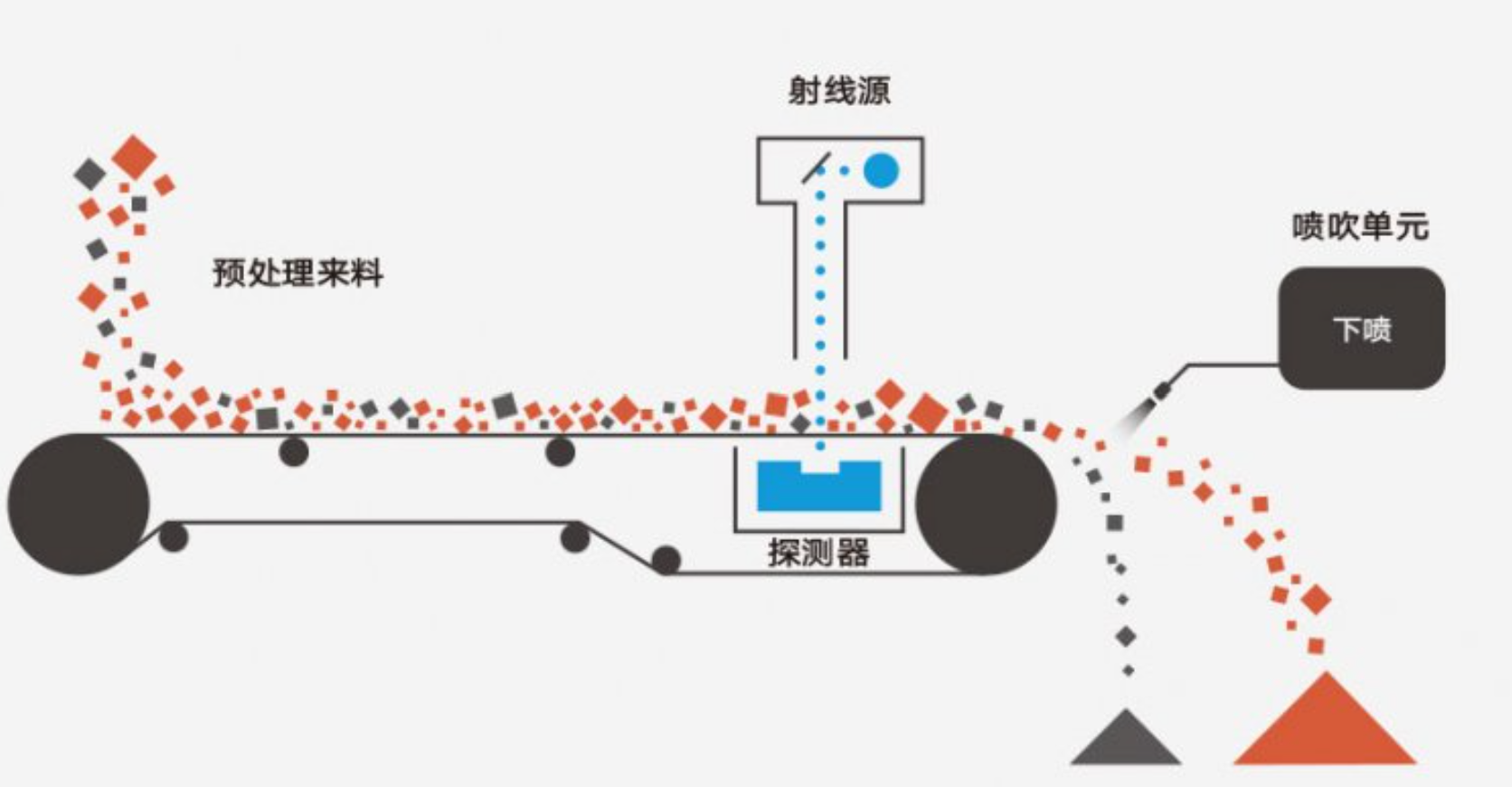 霍里思特的核心產(chǎn)品是基于X射線透視成像和AI識(shí)別算法的智能分選機(jī)。設(shè)備通過(guò)X射線探測(cè)器獲取礦石內(nèi)部結(jié)構(gòu)特征,結(jié)合AI算法識(shí)別廢石與有用礦石,最后用氣排槍實(shí)現(xiàn)精準(zhǔn)分離。整個(gè)過(guò)程無(wú)需用水,可大幅減少后續(xù)磨礦、浮選環(huán)節(jié)的無(wú)用功和藥劑消耗。